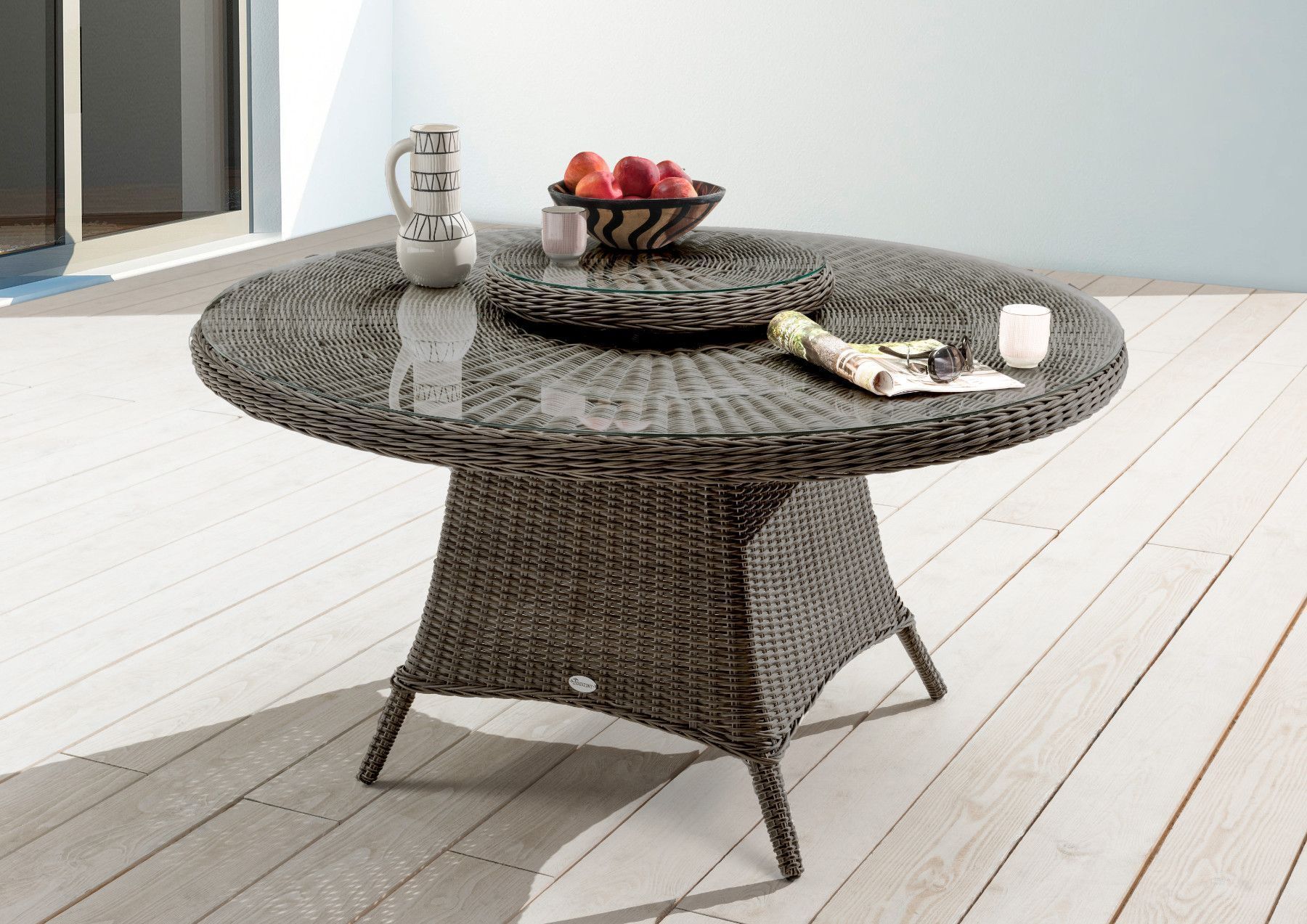 Destiny Destiny Gartentisch LUNA Ø150x75 cm mit Drehteller, Polyrattan, vintage grau