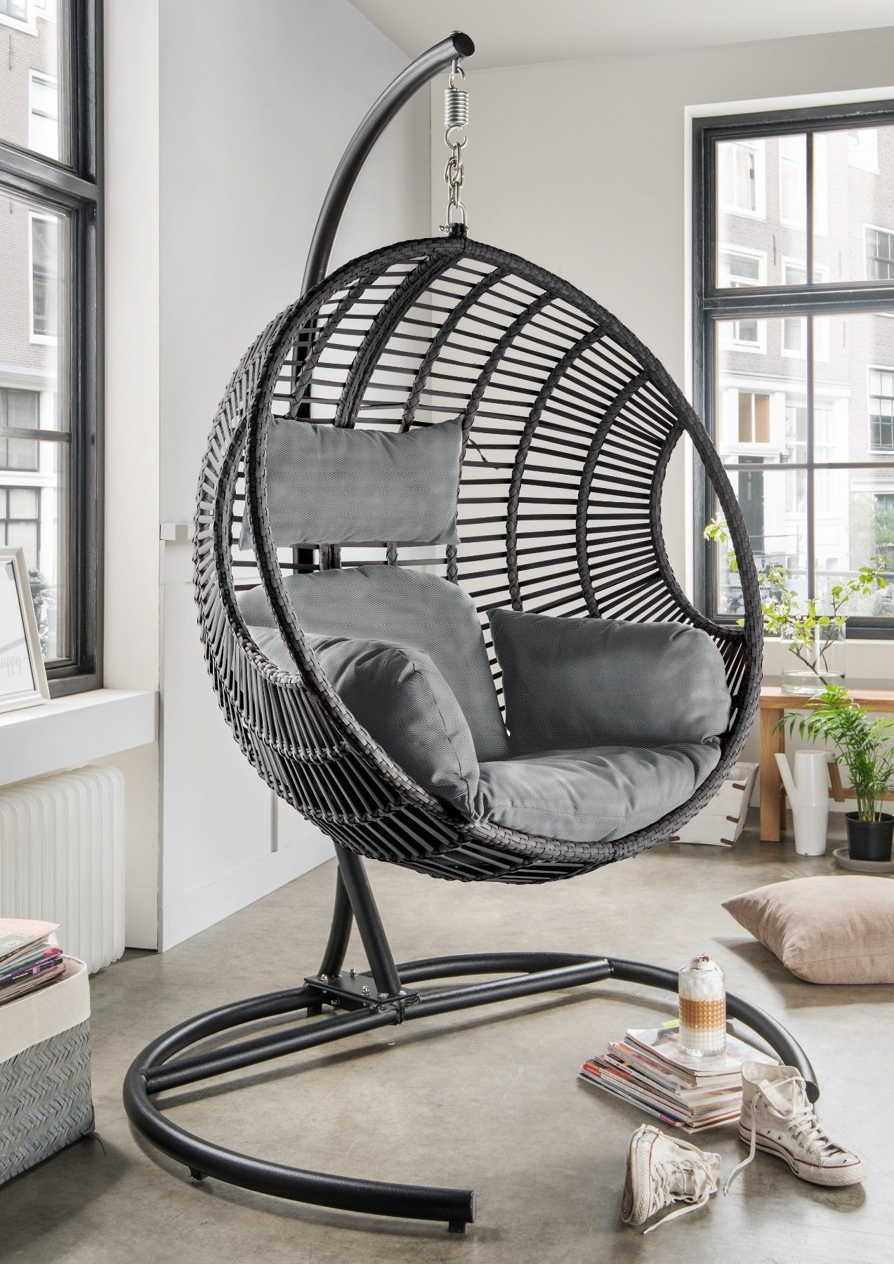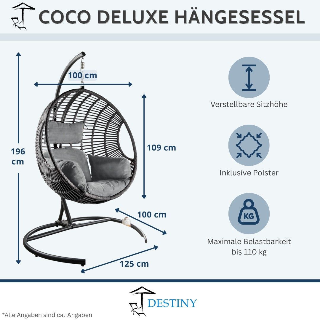 Destiny Destiny Hängesessel COCO DE LUXE, inkl. Gestell, Polyrattan, grau meliert
