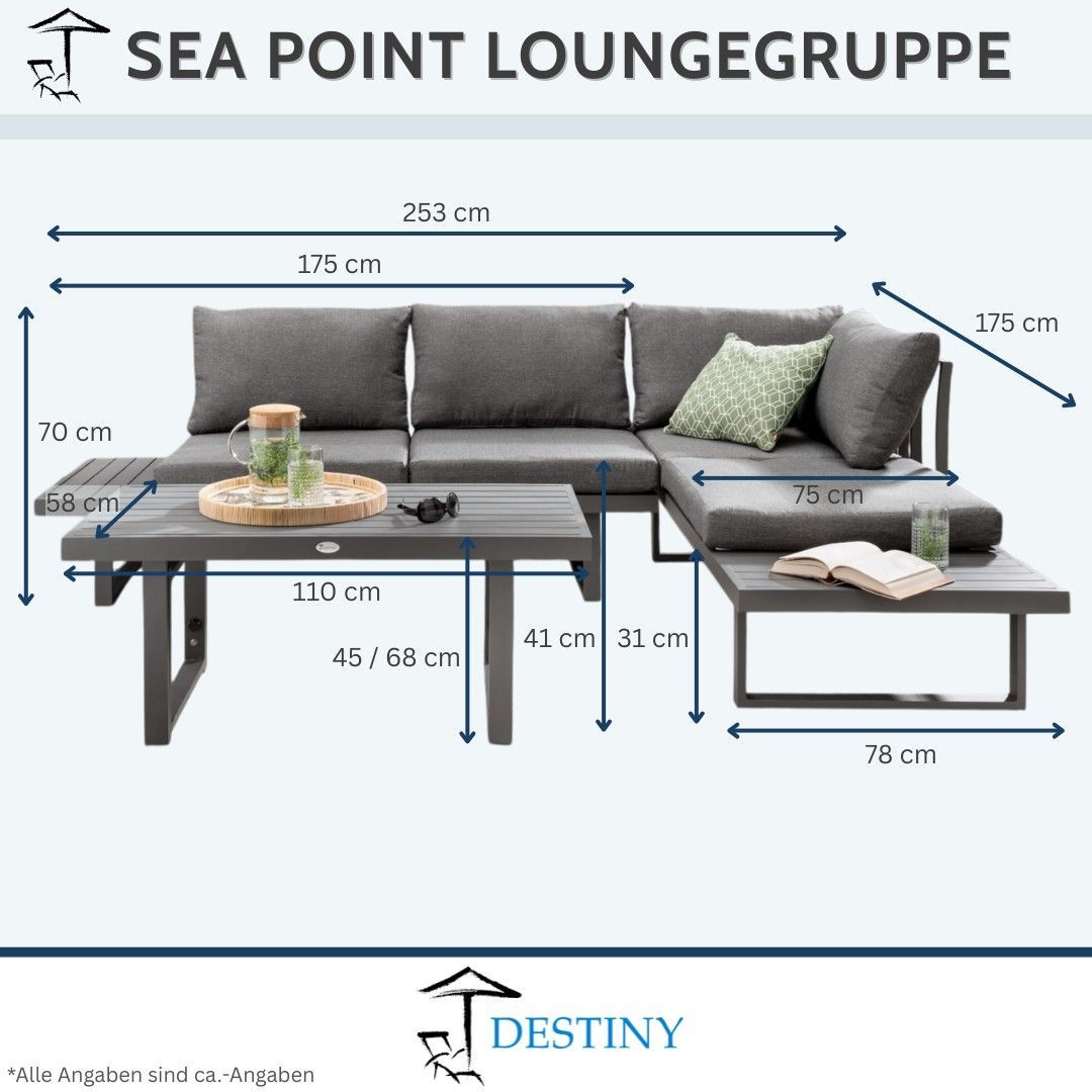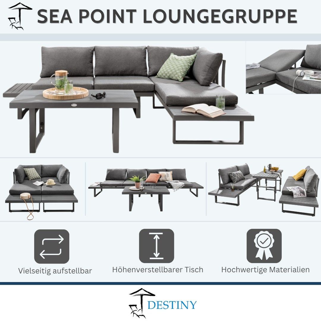 Destiny Destiny Loungegruppe SEA POINT, Tisch 110x58cm, vielseitig aufstellbar