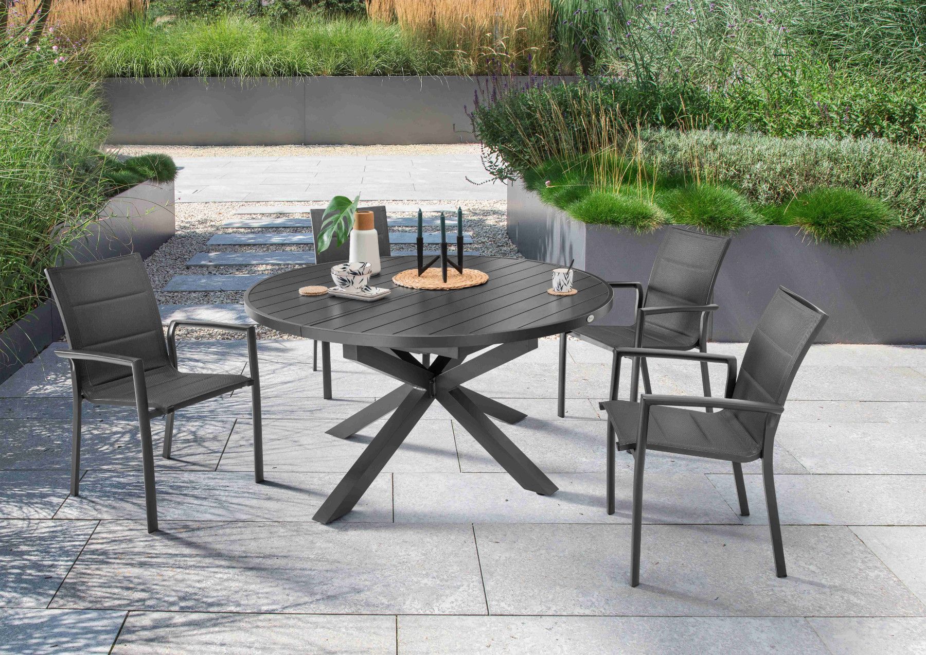 Destiny Destiny Sitzgruppe COSTA ARONA 4 Stapelsessel + Tisch Ø120/170x120x75cm ausziehbar