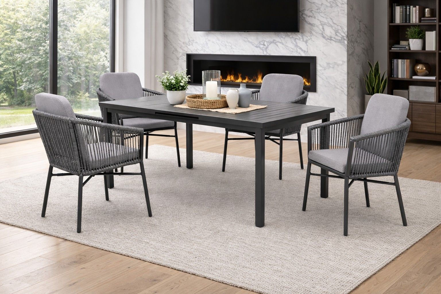 Destiny Destiny Sitzgruppe LIMONE IMOLA 4 Stapelsessel + 1 Tisch 165/215x100x75cm