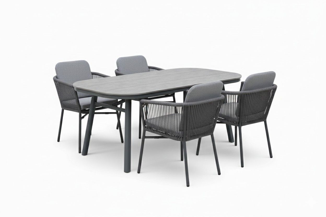 Destiny Destiny Sitzgruppe LIMONE SAN MARINO 4 Sessel + 1 Tisch 180x90x74cm, grau