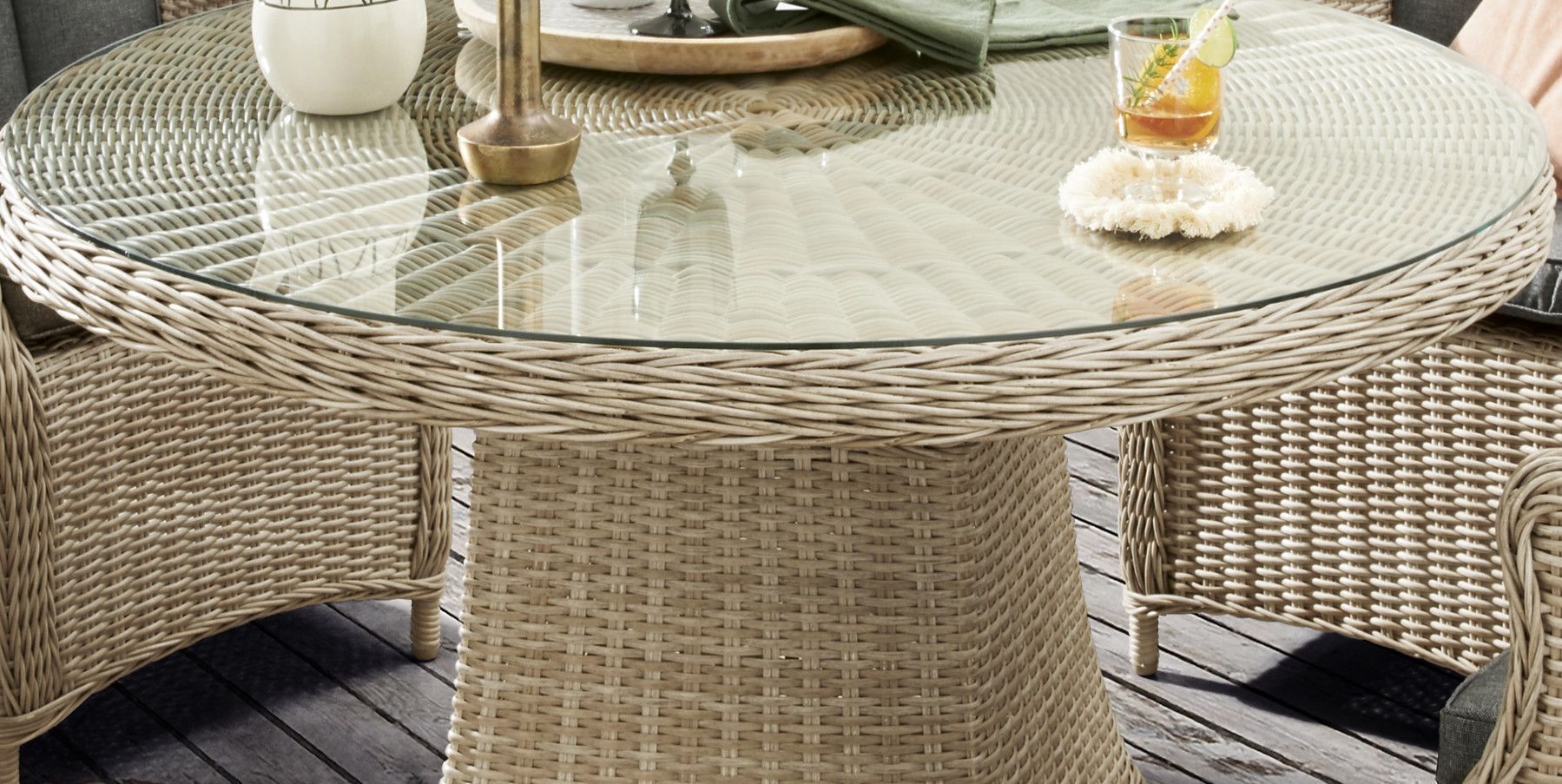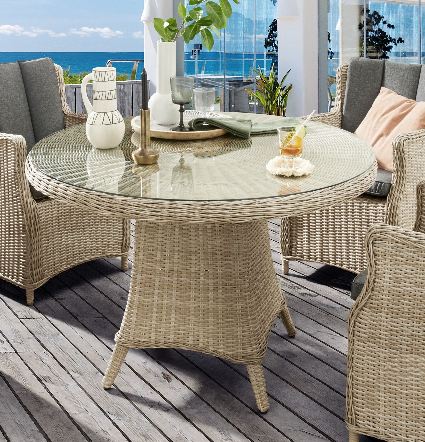 Destiny Destiny Sitzgruppe LUNA 4x Sessel + Tisch Ø120x75cm, natur meliert
