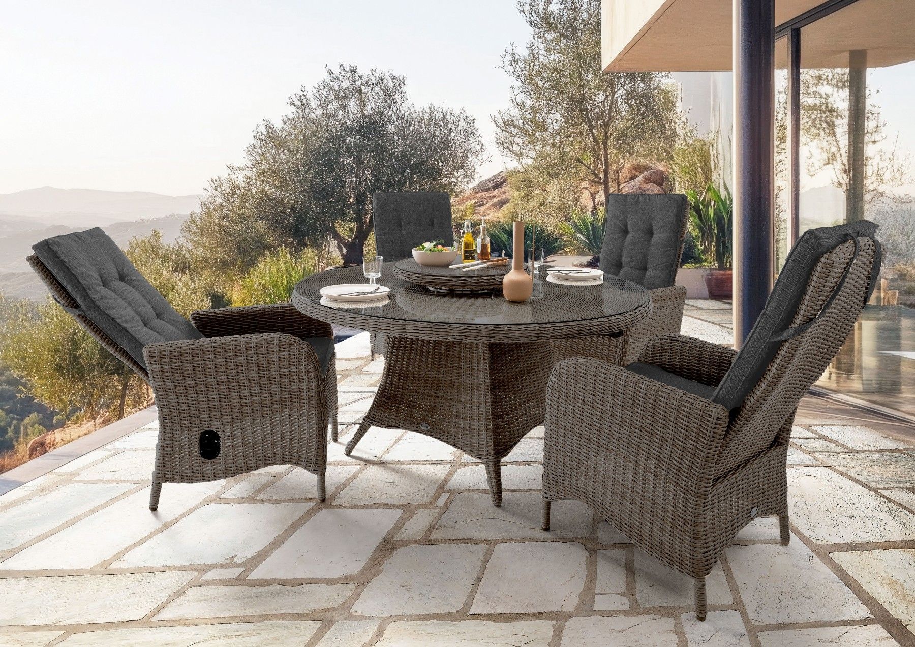 Destiny Destiny Sitzgruppe PALMA LUNA 4x Hochlehner + Tisch Ø150x75cm, vintage grau