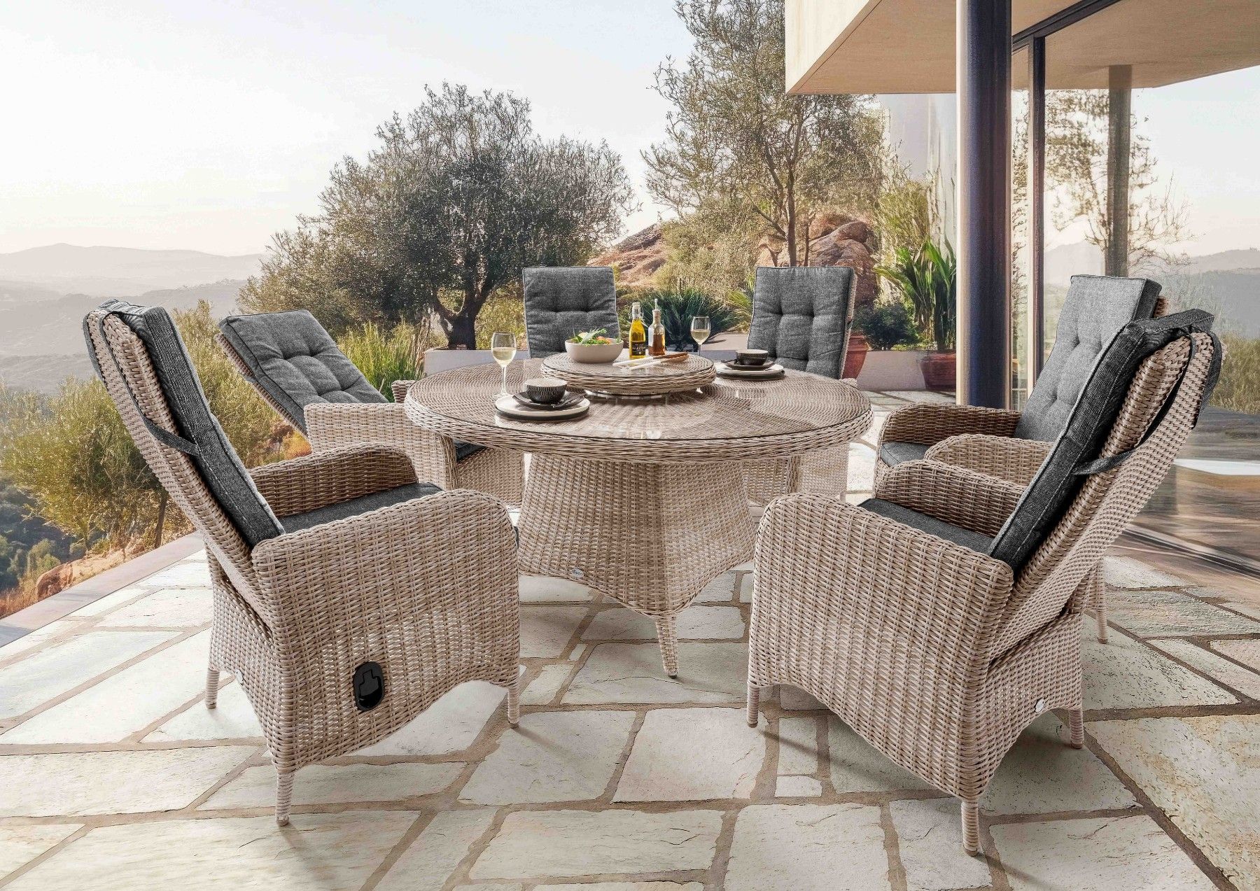 Destiny Destiny Sitzgruppe PALMA LUNA 6x Hochlehner + Tisch Ø150x75cm, natur meliert