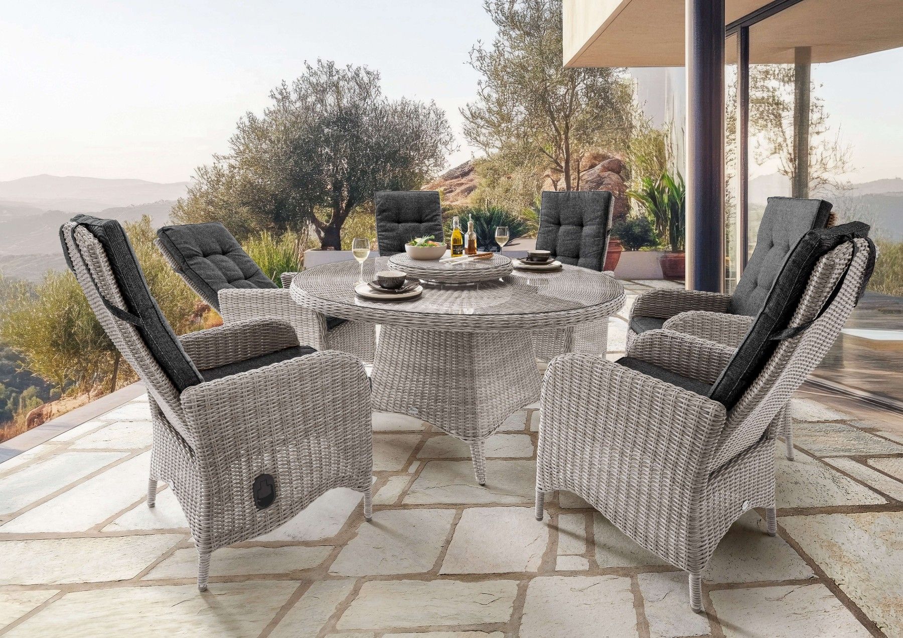 Destiny Destiny Sitzgruppe PALMA LUNA 6x Hochlehner + Tisch Ø150x75cm, vintage weiß