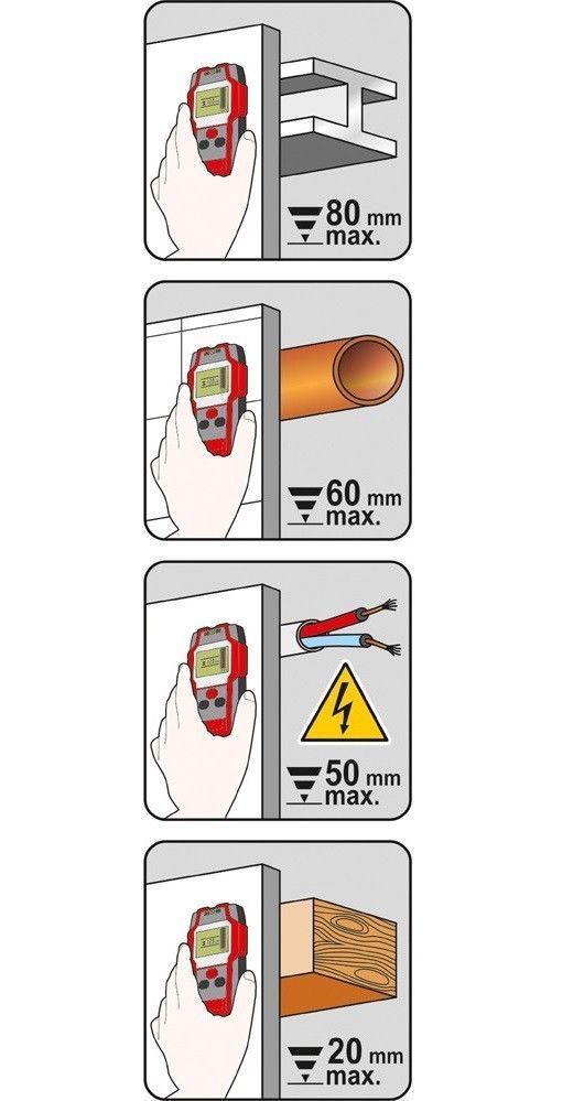 Yato Detektor für Metall, Holz, Kabel, Metallsuchgerät, Holzdetektor