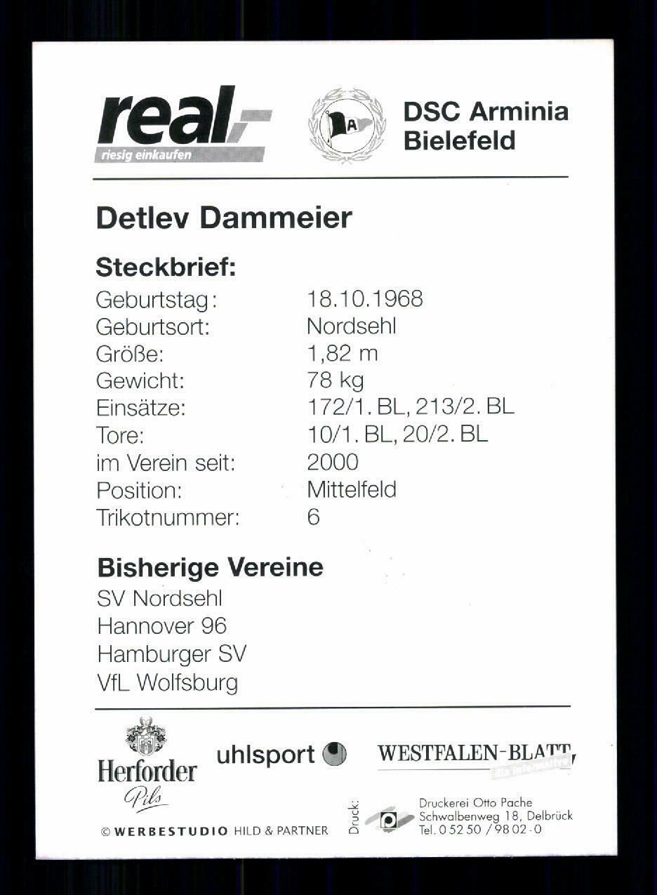Detlev Dammeier Autogrammkarte Arminia Bielefeld 2001-02 Original Signiert