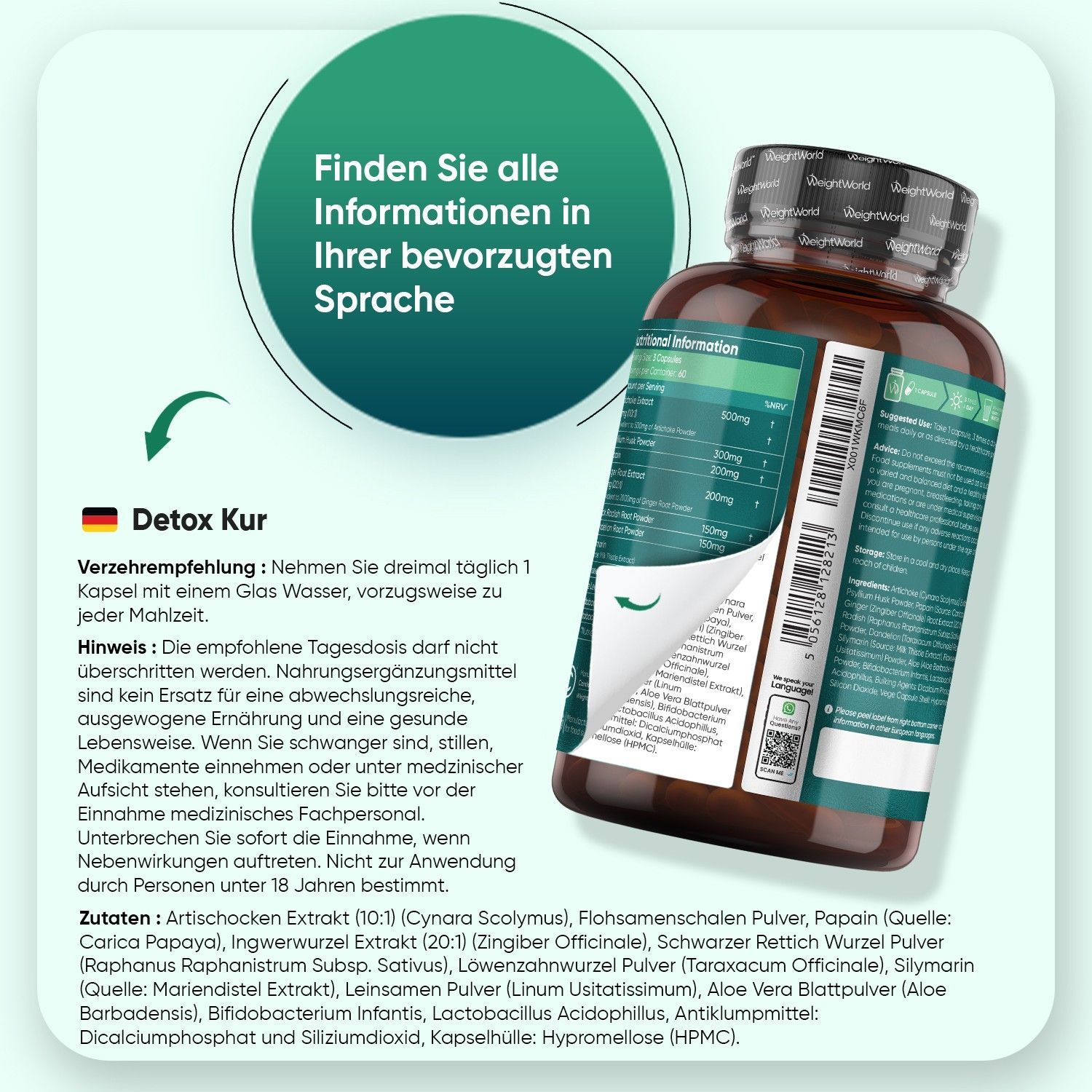 Detox Kur mit Artischocke, Mariendistel, Löwenzahn - 180 vegane Kapseln - WeightWorld