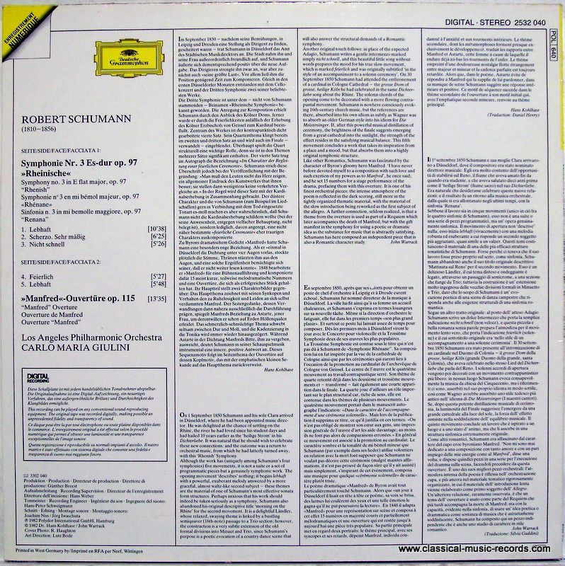 Deutsche Grammophon 2532 040 - Robert Schumann, Carlo Maria Giulini, Los Angeles