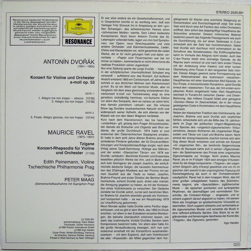 Deutsche Grammophon 2535 391 - Antonín Dvorák, Maurice Ravel, Edith Peinemann
