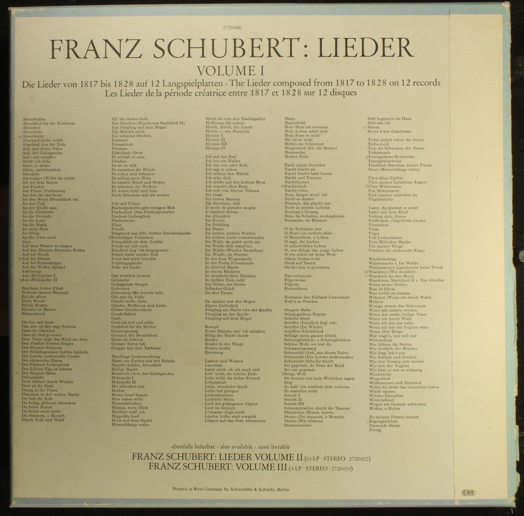 Deutsche Grammophon 2720 006 - Franz Schubert, Dietrich Fischer-Dieskau, Gerald