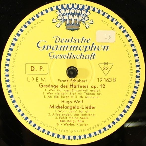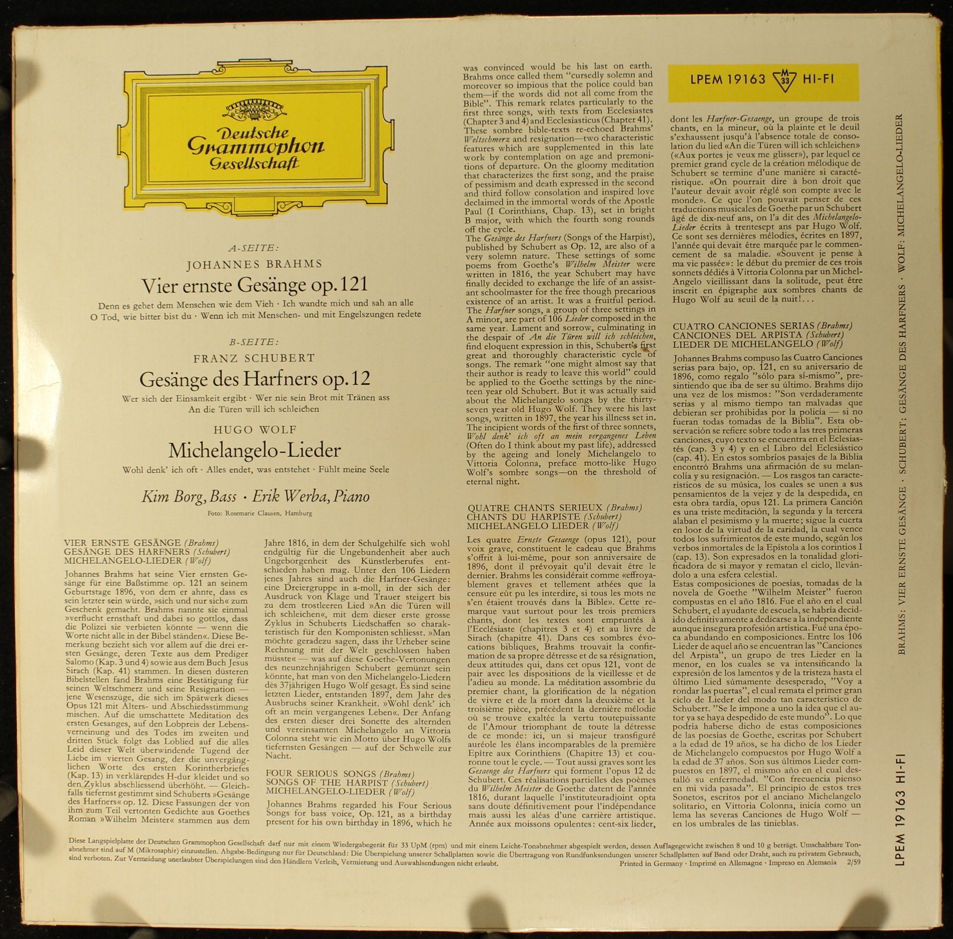 Deutsche Grammophon LP EM 19 163 - Johannes Brahms, Franz Schubert, Hugo Wolf, K