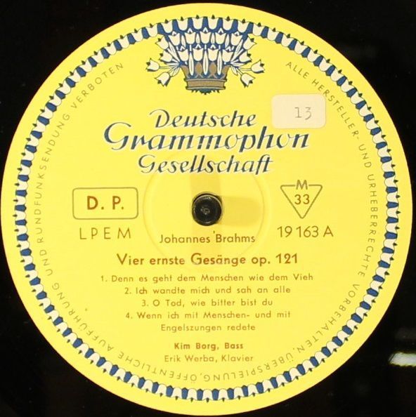 Condition Vinyl Near Mint (NM or M-) Condition Sleeve Very Good (VG) Tracks included: Vier Ernste Gesänge Op. 121 Composed By : Johannes Brahms I 1. > Denn Es Gehet Dem Menschen Wie Dem Vieh 2. > Ich Wandte Mich Und Sah An Alle 3. > O Tod, Wie Bitter Bist Du 4. > Wenn Ich Mit Menschen- U