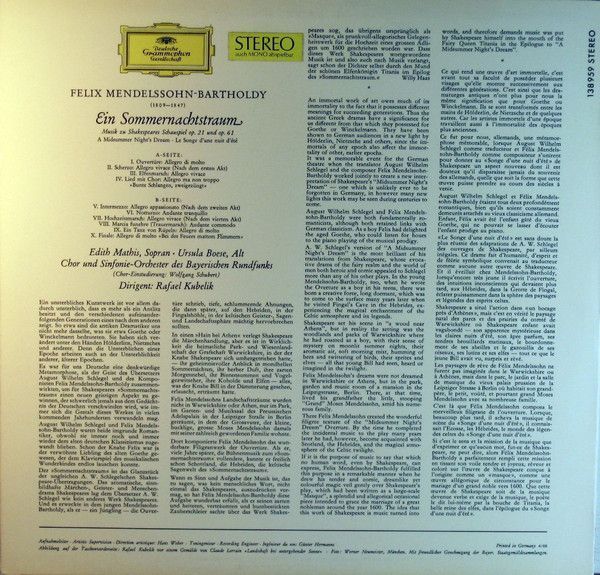 Condition Vinyl Near Mint (NM or M-) Condition Sleeve Very Good Plus (VG+) Tracks included: Ein Sommernachtstraum - Musik Zu Shakespeares Schauspiel Op. 21 Und Op. 61 (A Midsummer Night& 039;s Dream) I 1. > I. Ouvertüre: Allegro Di Molto 2. > II. Scherzo: Allegro Vivace (Nach Dem Ersten Akt) 3