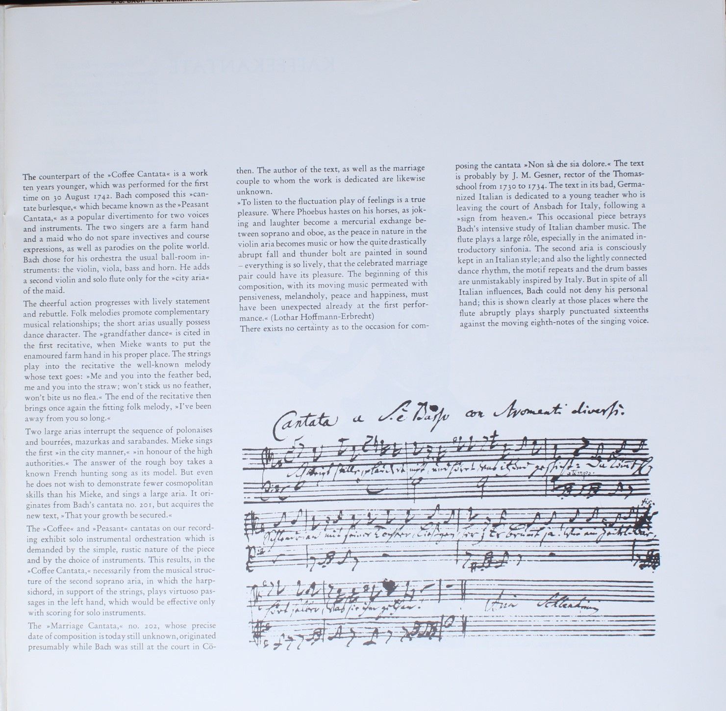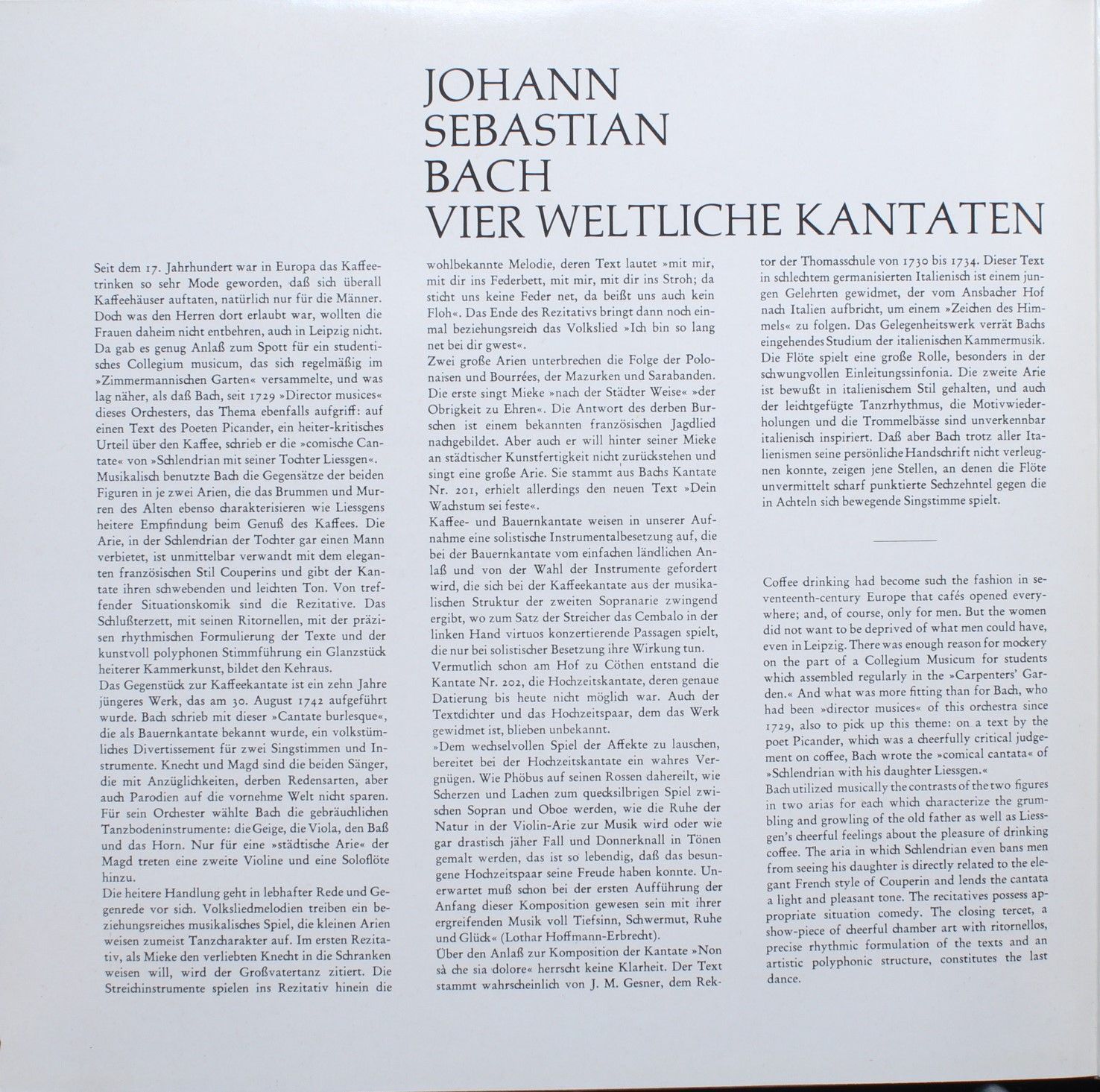 Condition Vinyl Near Mint (NM or M-) Condition Sleeve Very Good (VG) Tracks included: I Schweigt Stile, Plaudert Nicht - Kaffee-Kantate Nr. 211 II Mer Hahn En Neue Oberkeet - Bauern-Kantate Nr. 212 III Weichet Nur, Betrübte Schatten - Hochzeits-Kantate Nr. 202 IV Nen Sa Che Sia Dolore - Kantate BWV