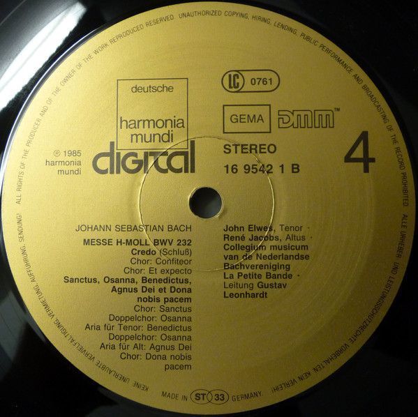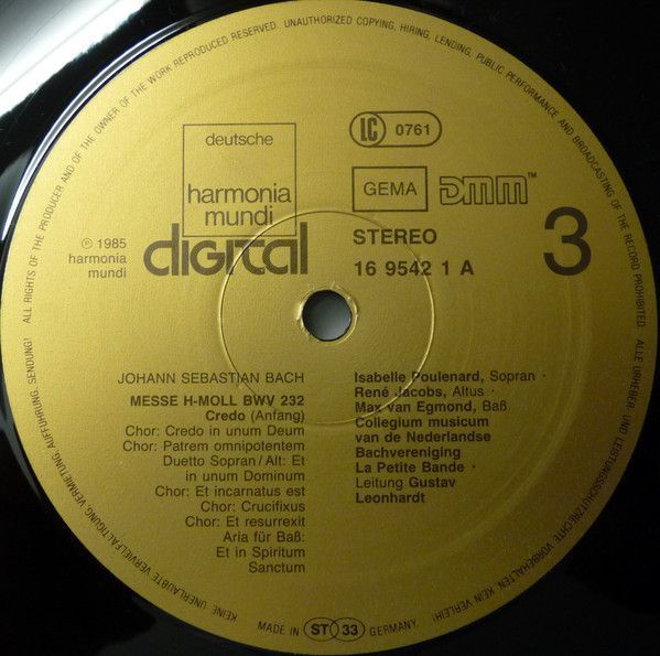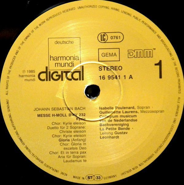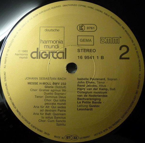 Deutsche Harmonia Mundi 1C 157 16 9541 3 - Johann Sebastian Bach, Gustav Leonhar