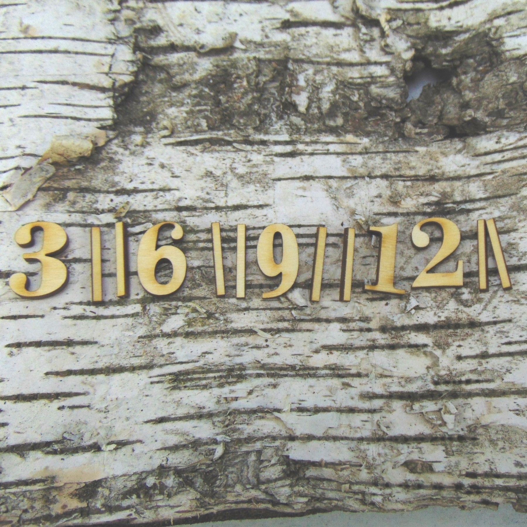 Deutsche Zahlen Ziffern 3 6 9 12 & 8 Striche Holz in 25mm Höhe für Uhren Sonderposten