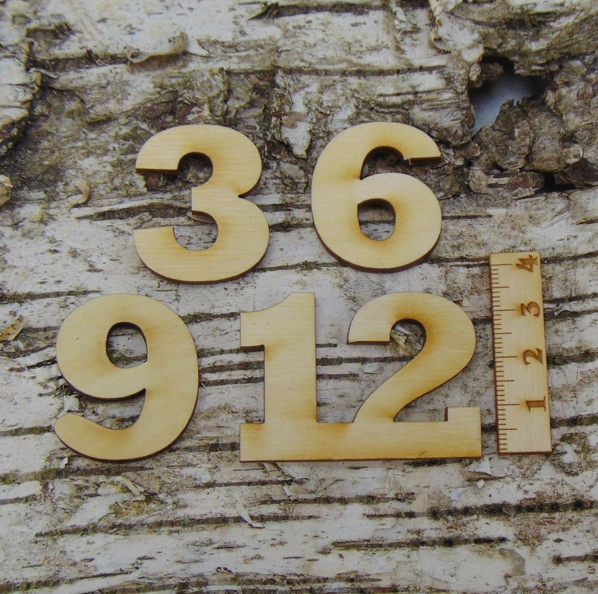 Deutsche Zahlen Ziffern 3 6 9 12 Holz, in 30mm Höhe zum Basteln für Uhren