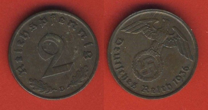 Deutsches Reich 2 Reichspfennig 1936 D