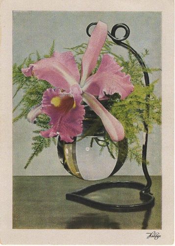 Deutschland Anhalt AK Orchidee in Vase Künstlerkarte Ansichtskarte Postkarte Auf der Vorderseite rechts steht Heldge. Auf der Rückseite steht: B 4. Nach Org.-Farbfoto. Heldge, Köthen Anhalt, Bernburger Str. 48, sowie Nr. 2. Köthen Ansichtskarte Postkarte - postalisch nicht gelaufen Das Format beträg