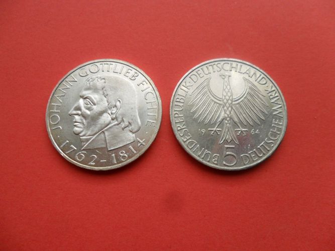 DEUTSCHLAND 1964 5 DM SILBER in bester Erhaltung unzirkuliert 150.Todestag von Johann Gottlieb Fichte * 1762 - 1814
