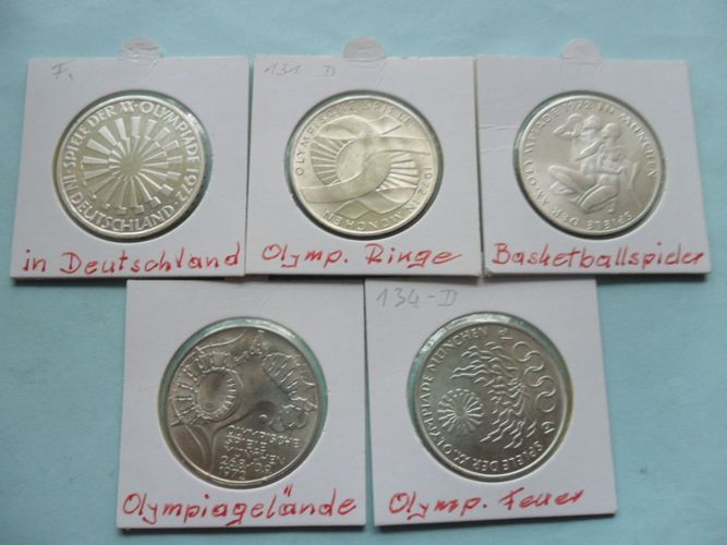 Deutschland BRD 1972 Olympia 10 DM Silber Satz 5 Münzen