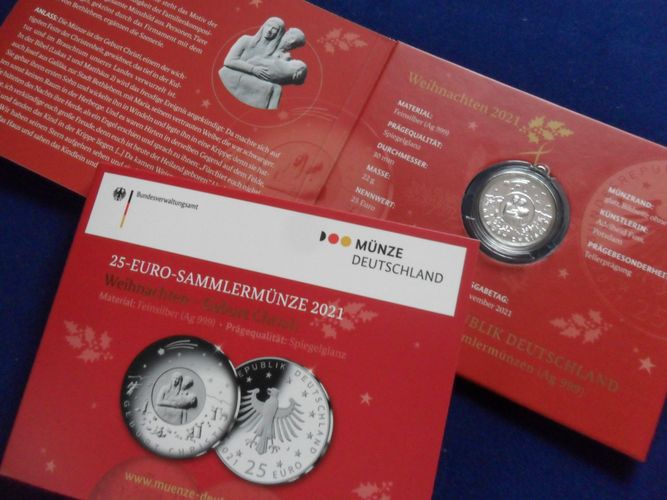 Deutschland 2021 25 € Spiegelglanz PP Die erste 25 € Sammler - Sondermünze Serie Weihnachten * Geburt Christi * Das perfekte Weihnachtsgeschenk,kann durch eine Öse an der Kapsel auch zur Dekoration am Weihnachtsbaum verwendet werden. erste BRD Münze als Tellerprägung * reinstes Feinsilber