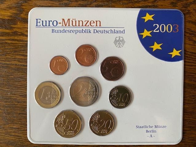 Hallo, biete hier folgenden Artikel an. Kursmünzen-Satz der Bundesrepublik Deutschland 2003 Münzprägestätte A für Berlin Originalware der Verkaufsstelle für Sammlermünzen aus Bad Homburg Neu & OVP Versand gegen Kostenübernahme möglich. Privat Verkauf. Angebot und Verkauf unter Ausschluss jeglicher G