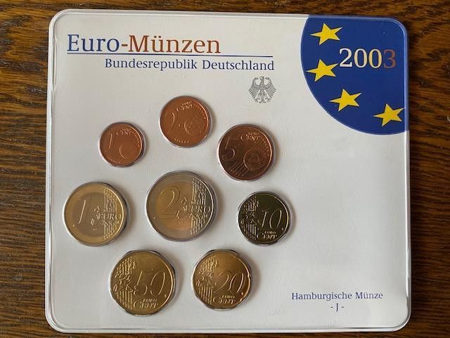 Hallo, biete hier folgenden Artikel an. Kursmünzen-Satz der Bundesrepublik Deutschland 2003 Münzprägestätte J für Hamburg Originalware der Verkaufsstelle für Sammlermünzen aus Bad Homburg Neu & OVP Versand gegen Kostenübernahme möglich. Privat Verkauf. Angebot und Verkauf unter Ausschluss jeglicher