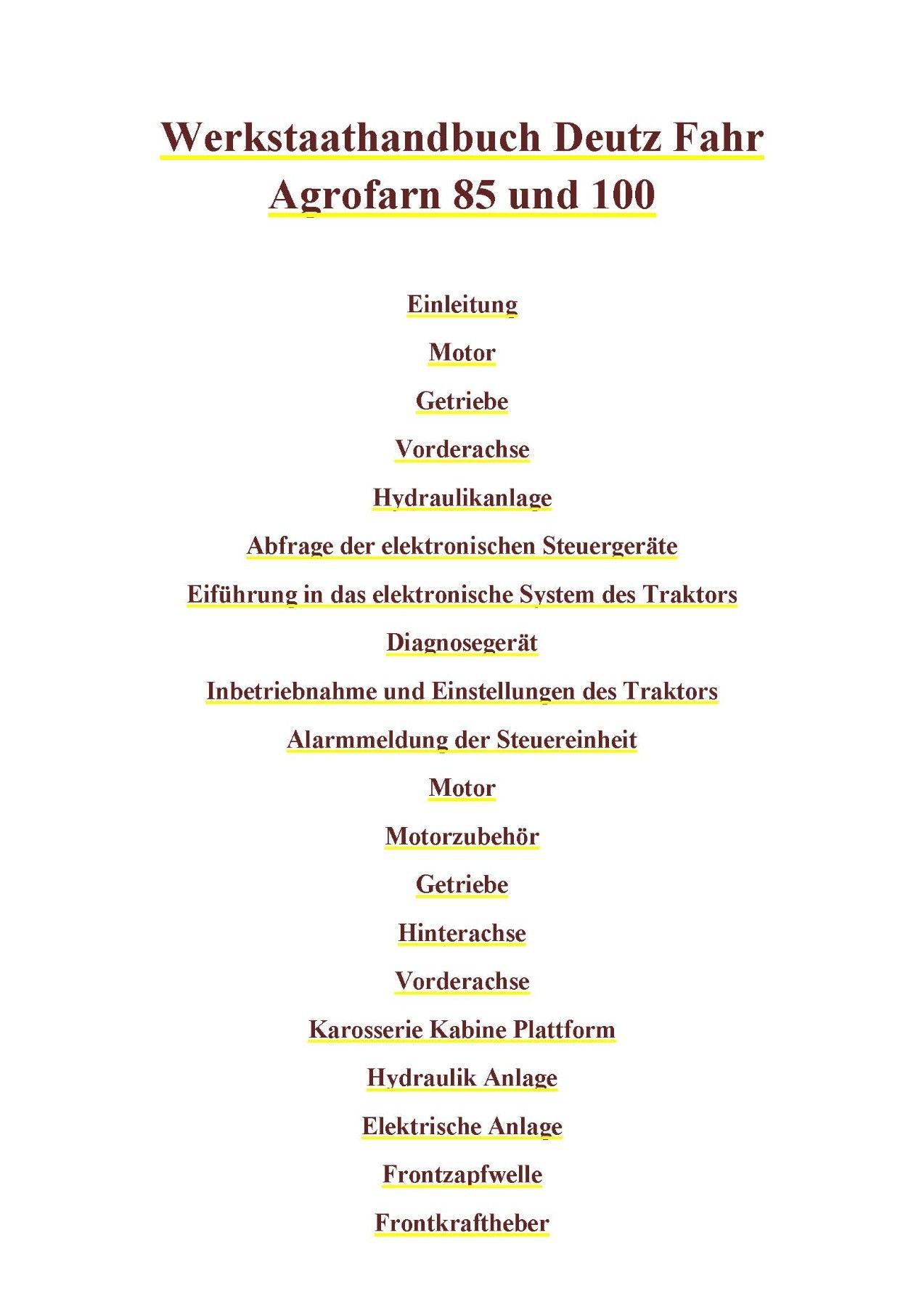 Deutz Agrofarm 85 und Agrofarm 100 Werkstatthandbuch Reparaturanleitung