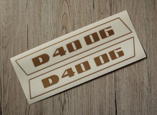 Deutz D4006 Aufkleber gold (bis 1974 schmale Raute neuere Variante) Hochwertiger Aufklebersatz für Deutz Traktor der Baureihe D4006 bis 1974 neuere Variante schmale Raute Die Traktoren der Baureihen 06 Serie ( dunkelgrün bis 1974) wurden vom Werk aus mit solchen Aufklebern beklebt. Es handelt sich h