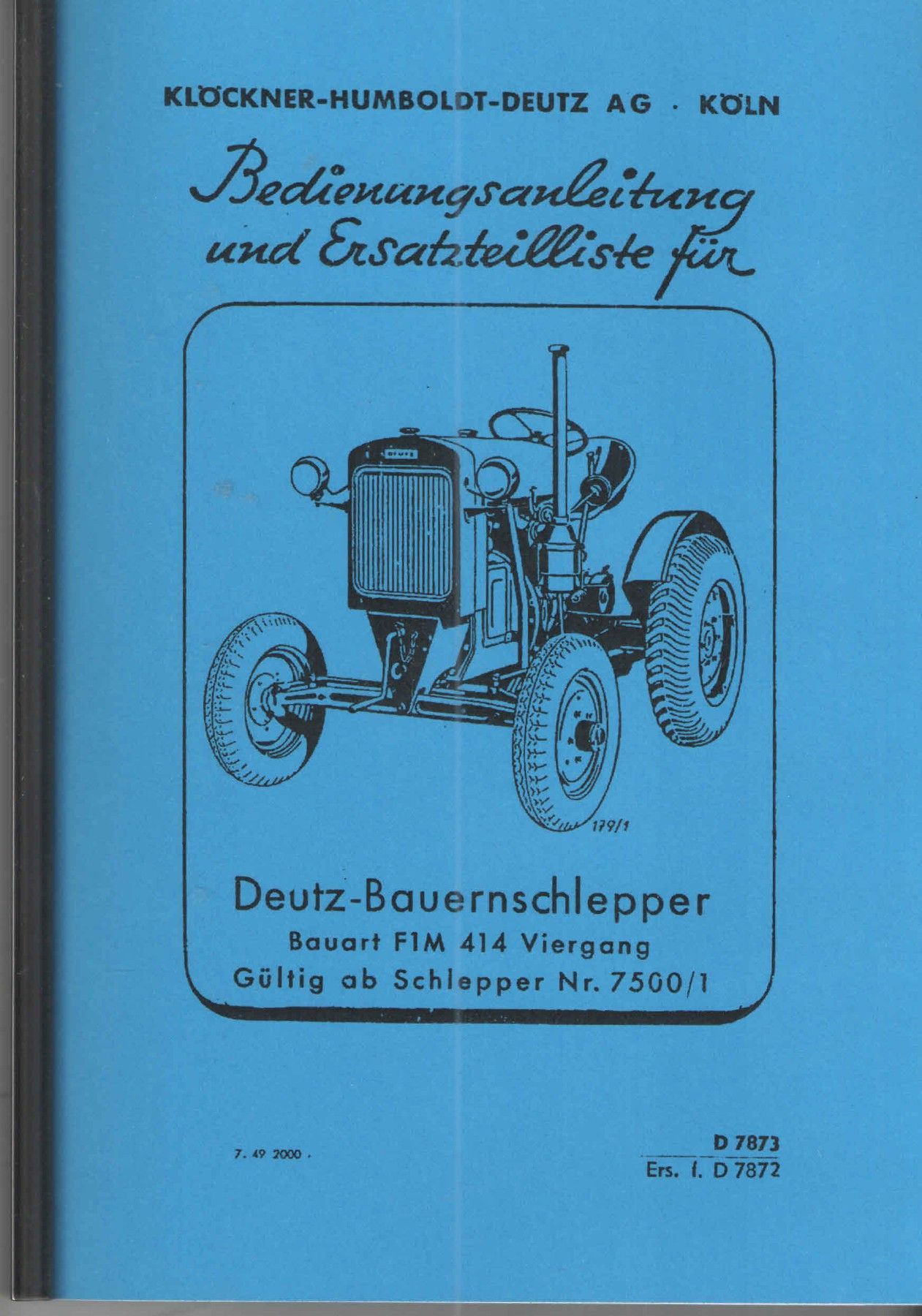 Deutz F 1 M 414 Bedienungsanleitung und Ersatzteilliste, Viergang, 11PS