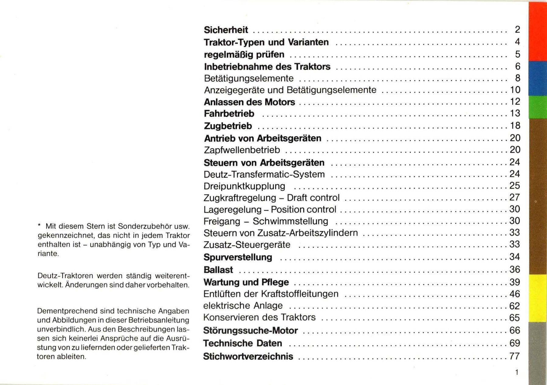 Deutz Fahr Schlepper D6807C + D7207C + D7807C Betriebsanleitung