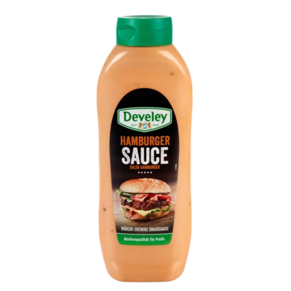 Develey Hamburger Sauce vegan in einer Kopfstandflasche 875ml