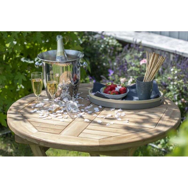 deVries Stehtisch "WOODIE" aus Teakholz Gartentisch rund klappbar Ø 80 x 110 cm