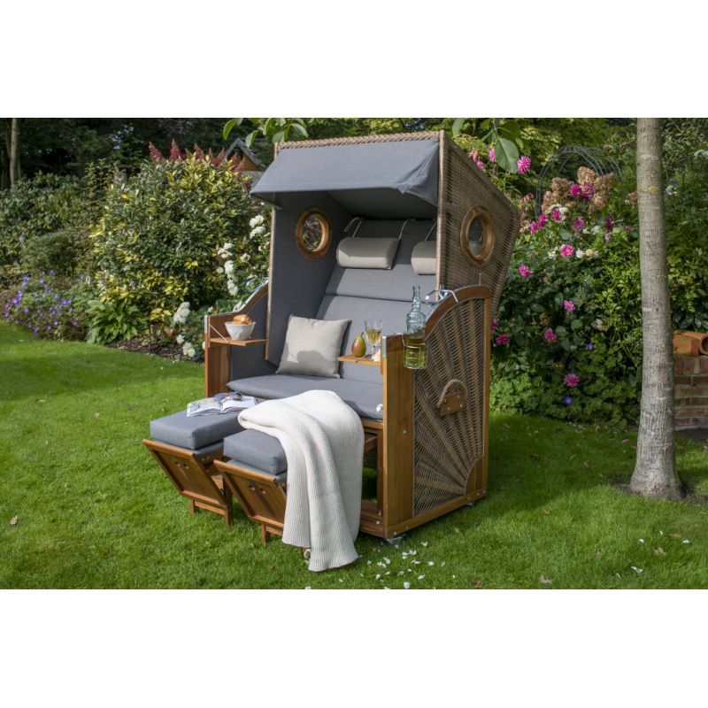 deVries Strandkorb "TREND 45" PE walnut Des. 751 mit Bullaugen 120 x 80 x 155 cm