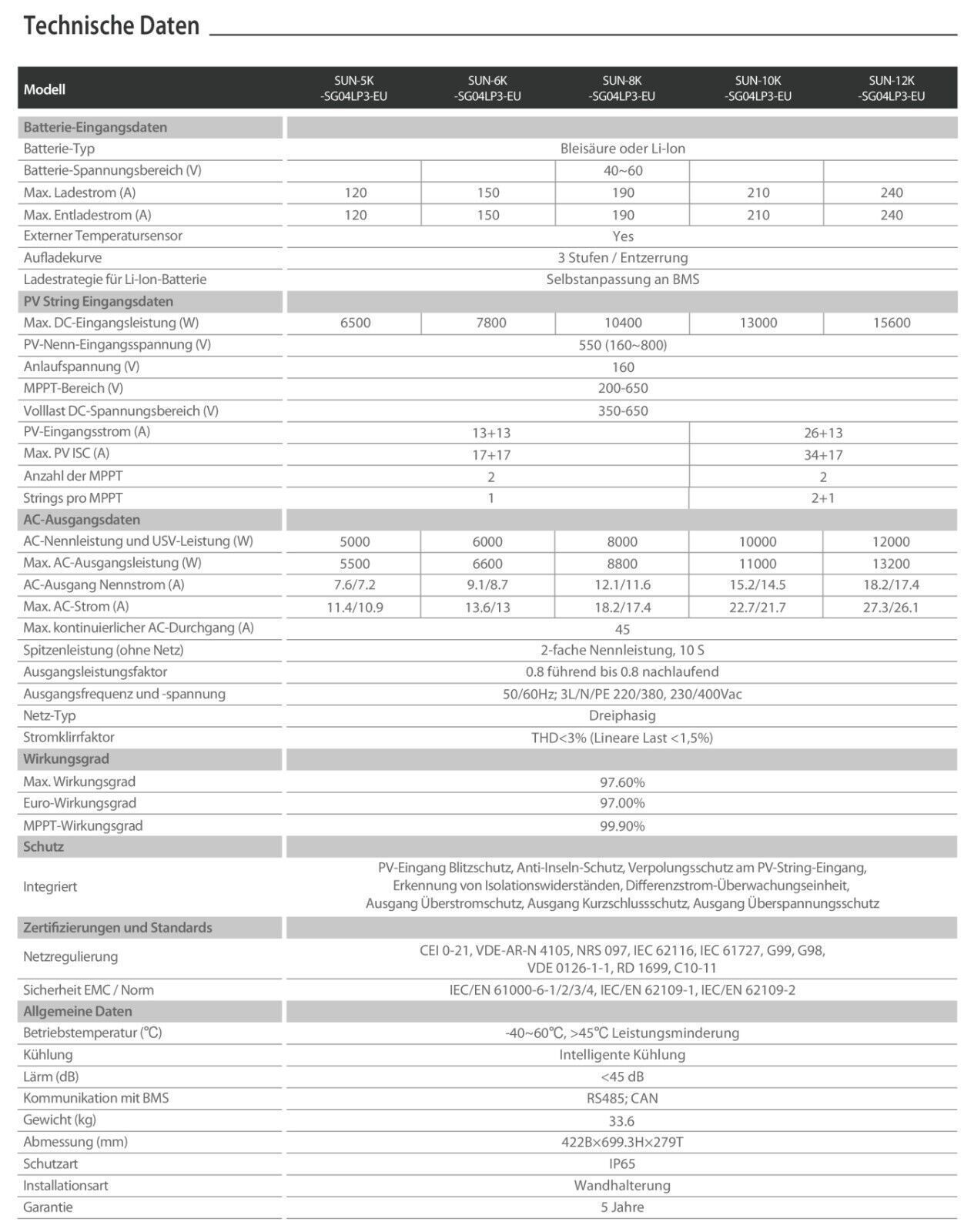 Deye SUN-8K-SG04LP3-EU Hybrid Wechselrichter 3phasig inkl. WIFI & DC Switch