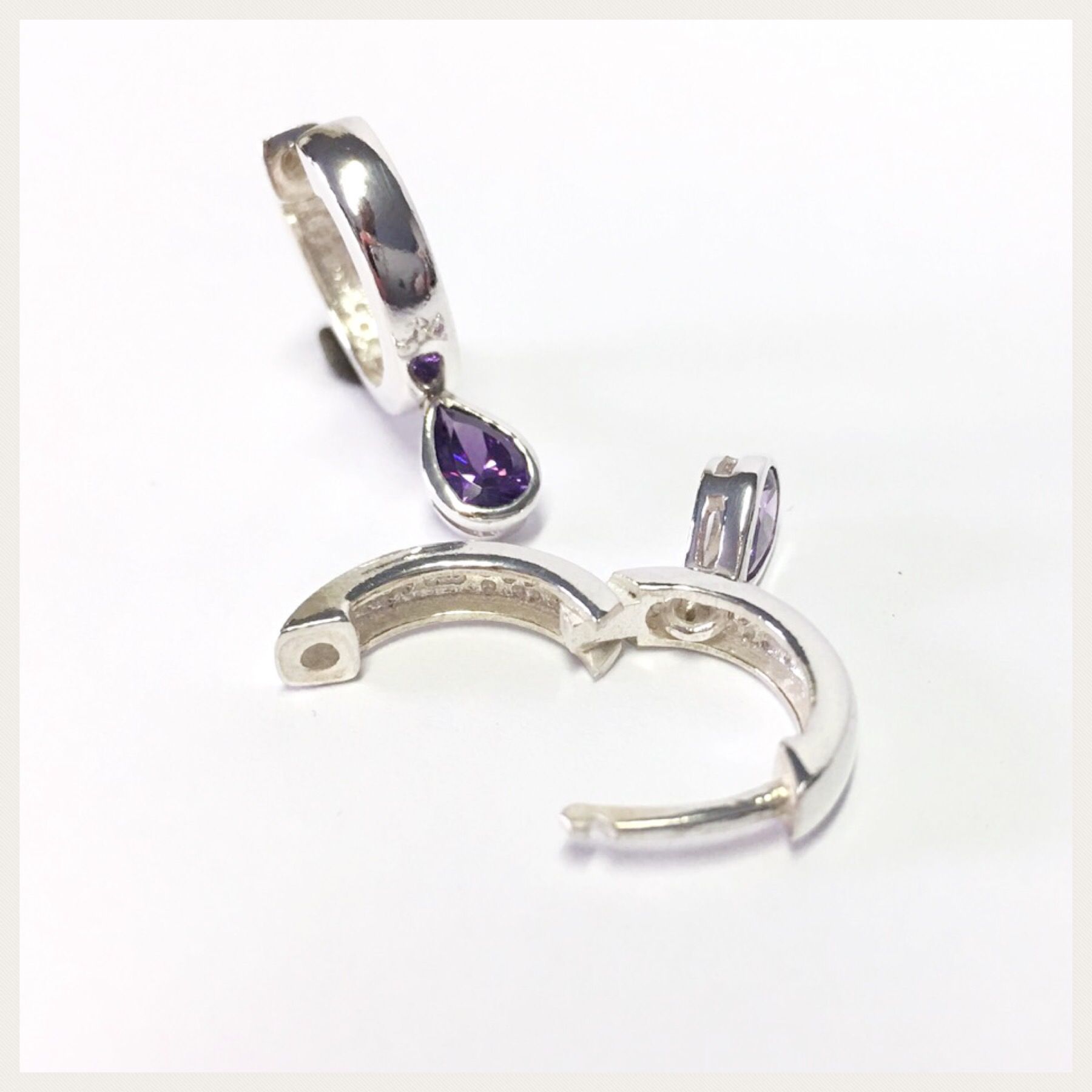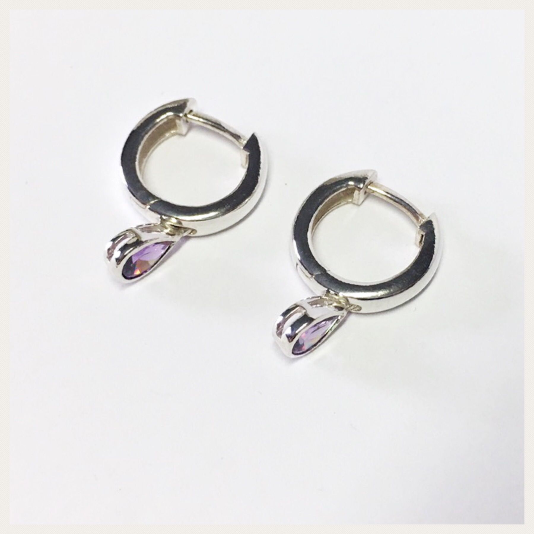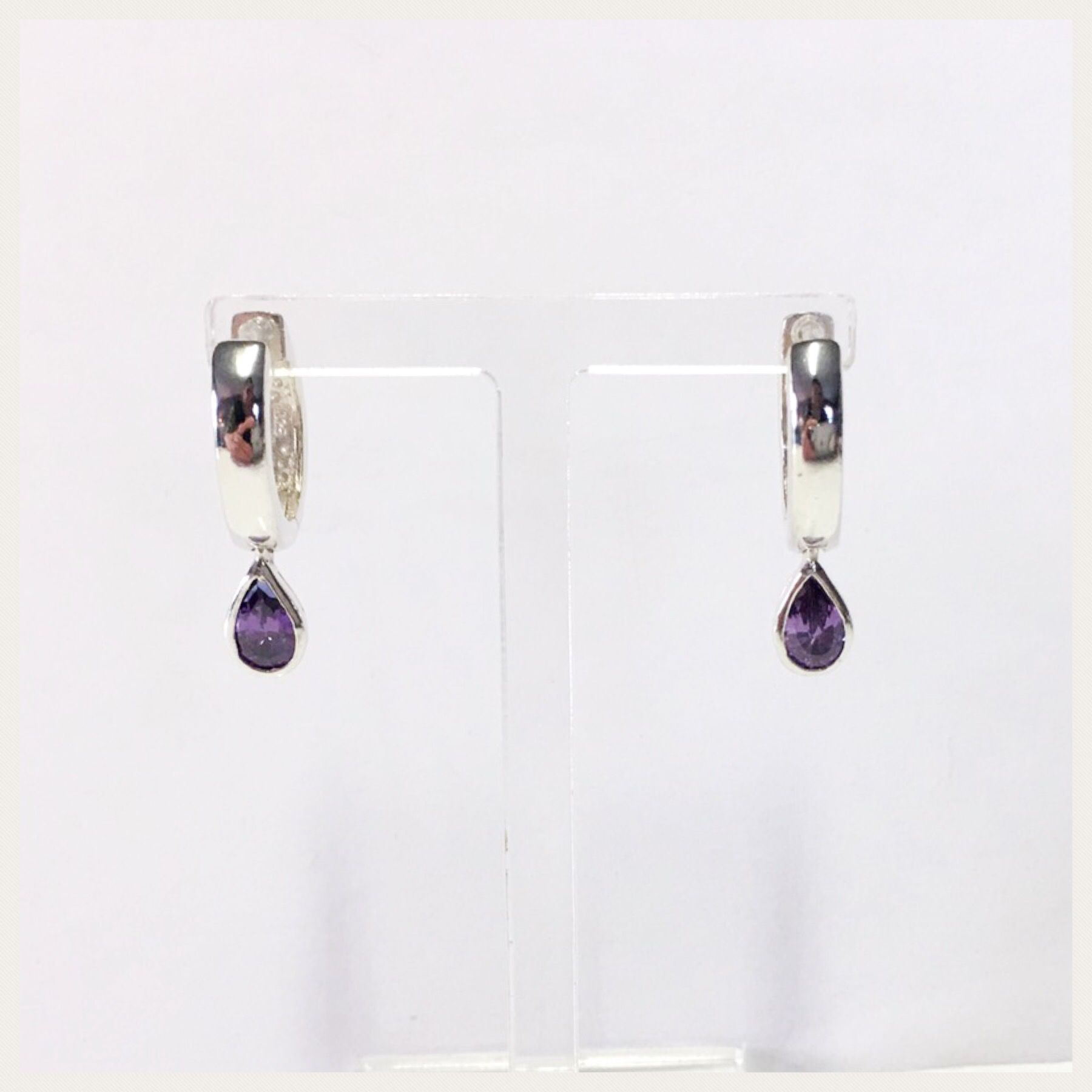 dezente Creolen in 925/- Sterling Silber fest integriertem Zirkonia tropfen lila