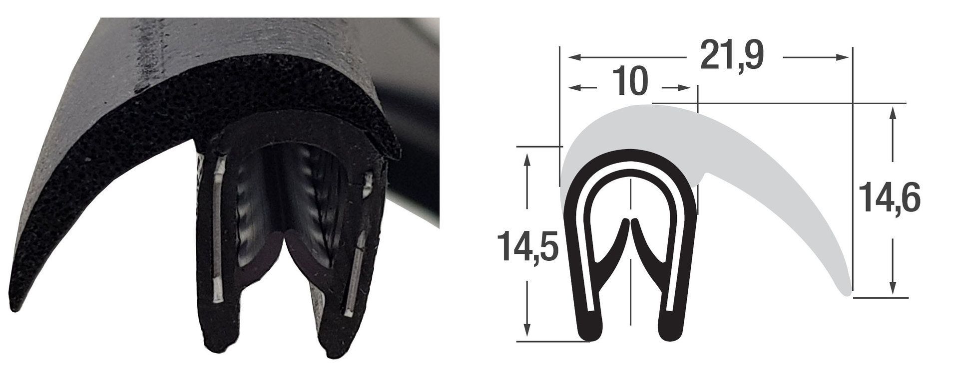 DF19 - Kantenschutz Dichtungs Profil Dichtung PVC/EPDM - Klemmbereich 1-4 mm