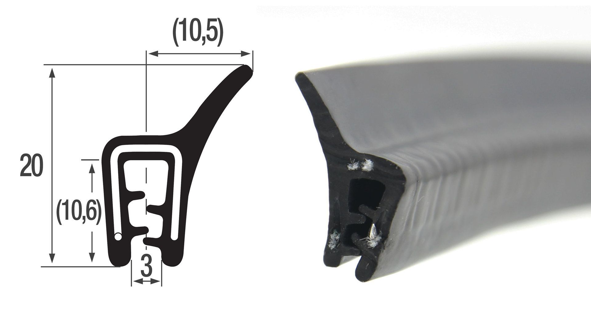 DF2 - EPDM Kantenschutz Dichtungs Fahnen Profil Gummi Dichtung - Klemmbereich 1-3 mm