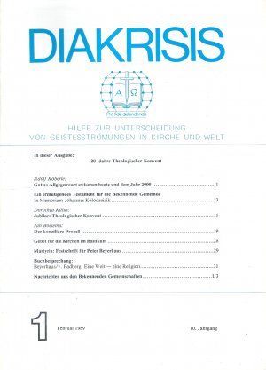 "Diakrisis Hilfe zur Unterscheidung von Geistesströmungen in Kirche und Welt"