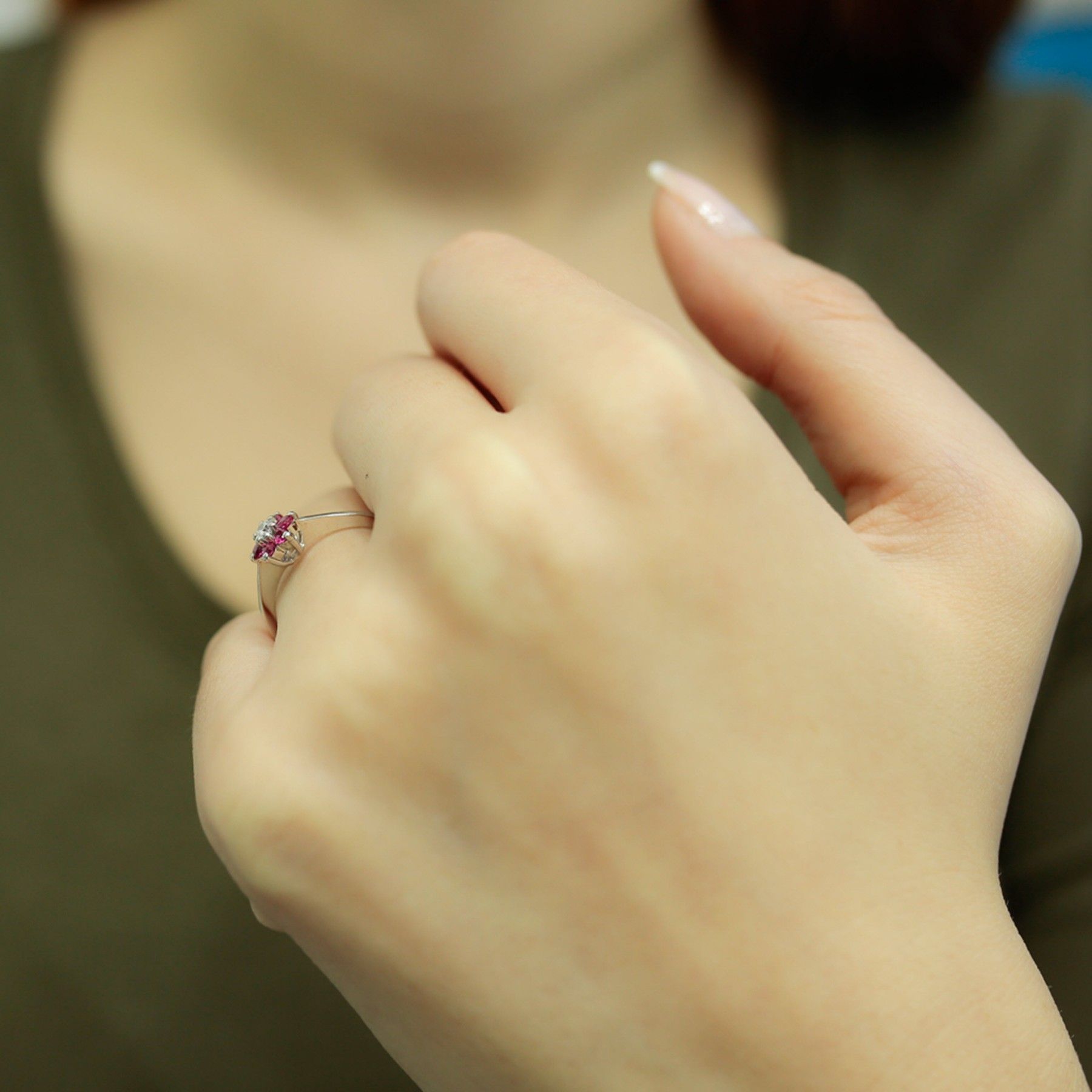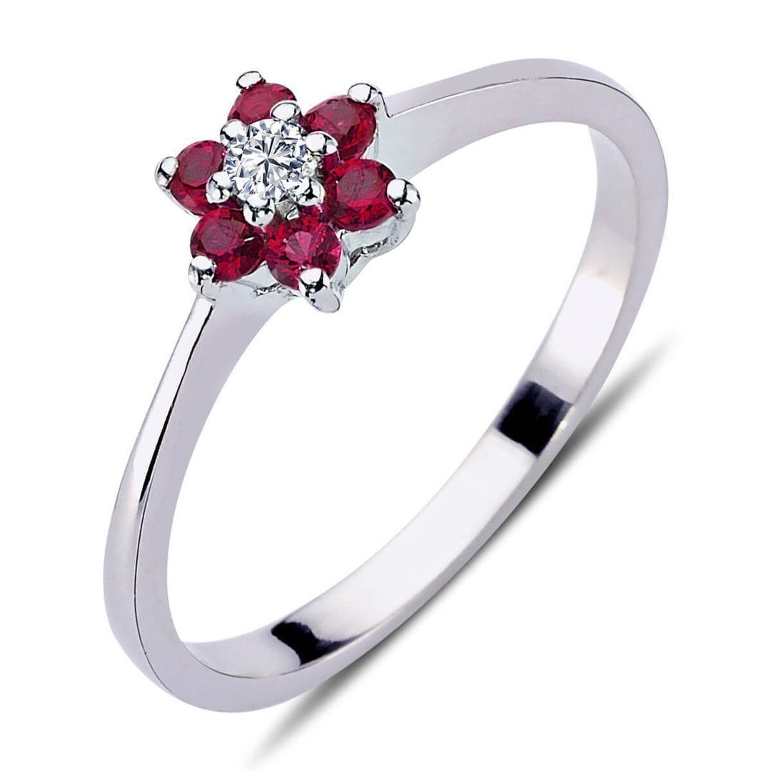 Diamant Rubin Gänseblümchen Ring Brillant-Schliff in 14 Karat Weißgold