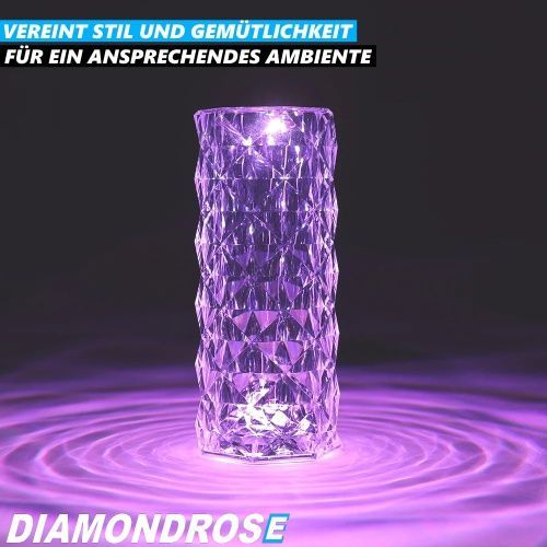 Diamondrose Crystal LED Kristall Tischlampe Leuchte mit Touch 16 Farben USB Akku