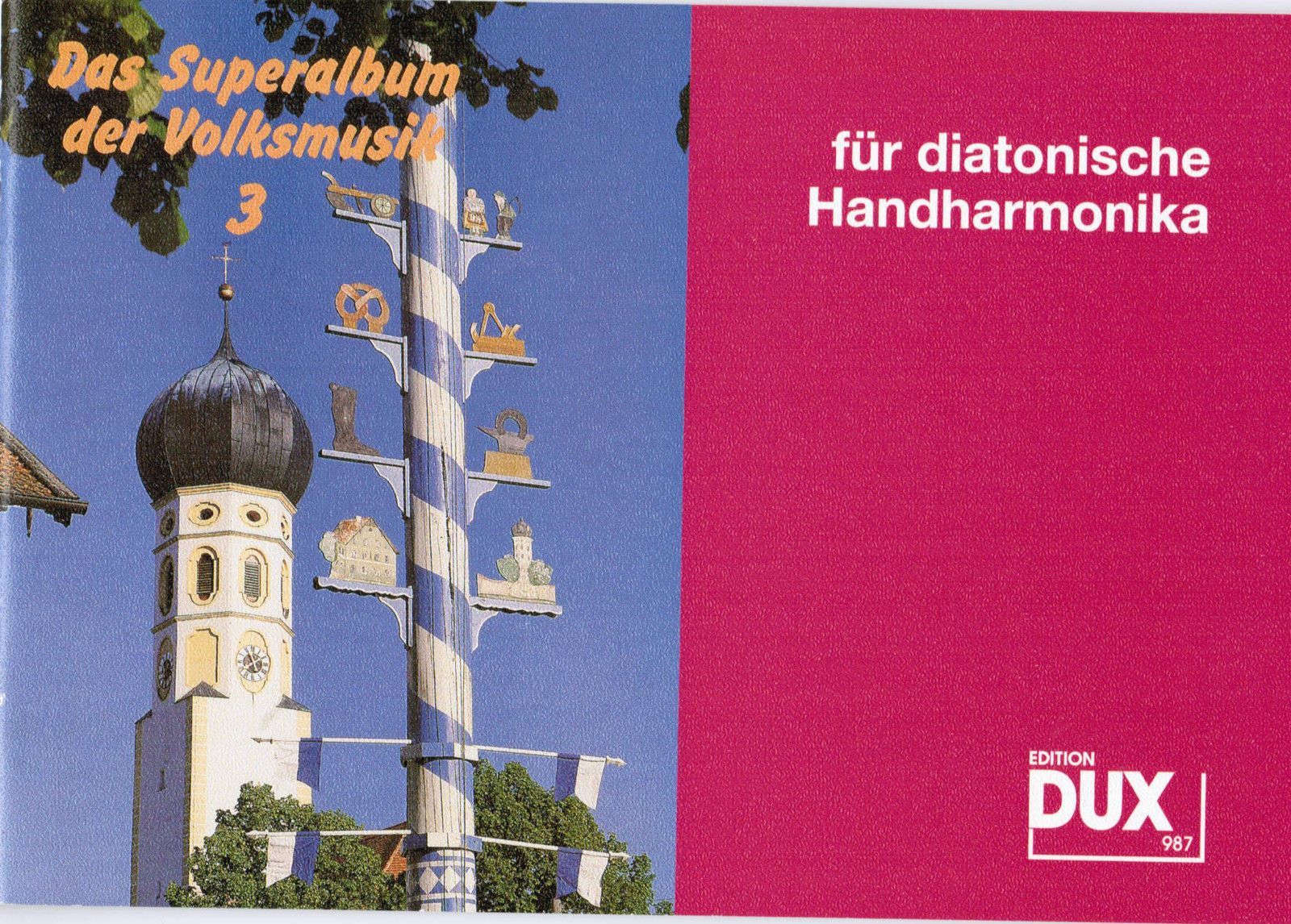 Das Superalbum der Volksmusik 3 für diatonische Handharmonika (2 - 2-Reihige mit Hilfsreihe - Club-Modelle) GRIFFSCHRIFT -- es ist kein Notenschlüssel dran ! Verlag : Edition DUX Seitenanzahl: 44 Format: A5 quer Zustand: NEU Schwierigkeitsgrad : leichte Mittelstufe bis Mittelschwer (meine pers.Einsc