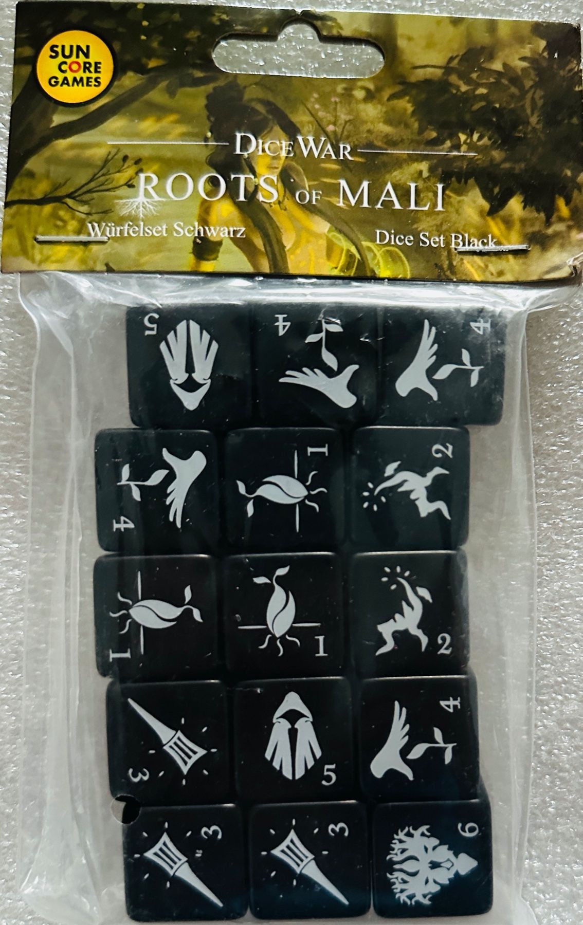 Dicewar Roots of Mali Würfelset Sun Core Games Würfelspiel Kennerspiel Würfel