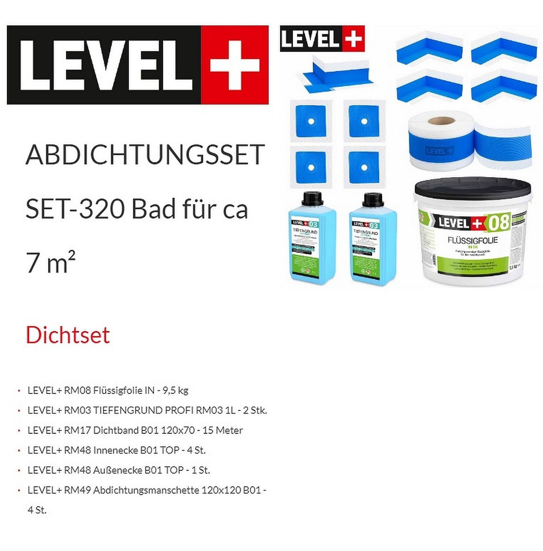 Dicht- Set Bad ca 7 m² Dusche Abdichtung Dichtband Flüssigfolie 9,5 kg SET320