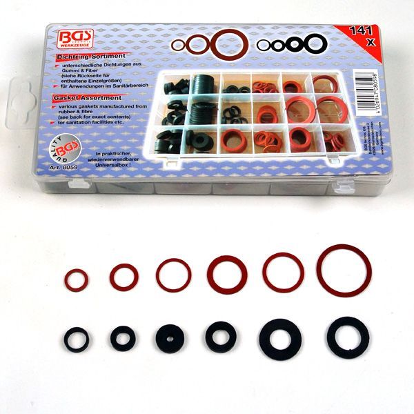 BGS Dichtring-Sortiment Gummi und Fiberglas, Dichtringe 141-tlg