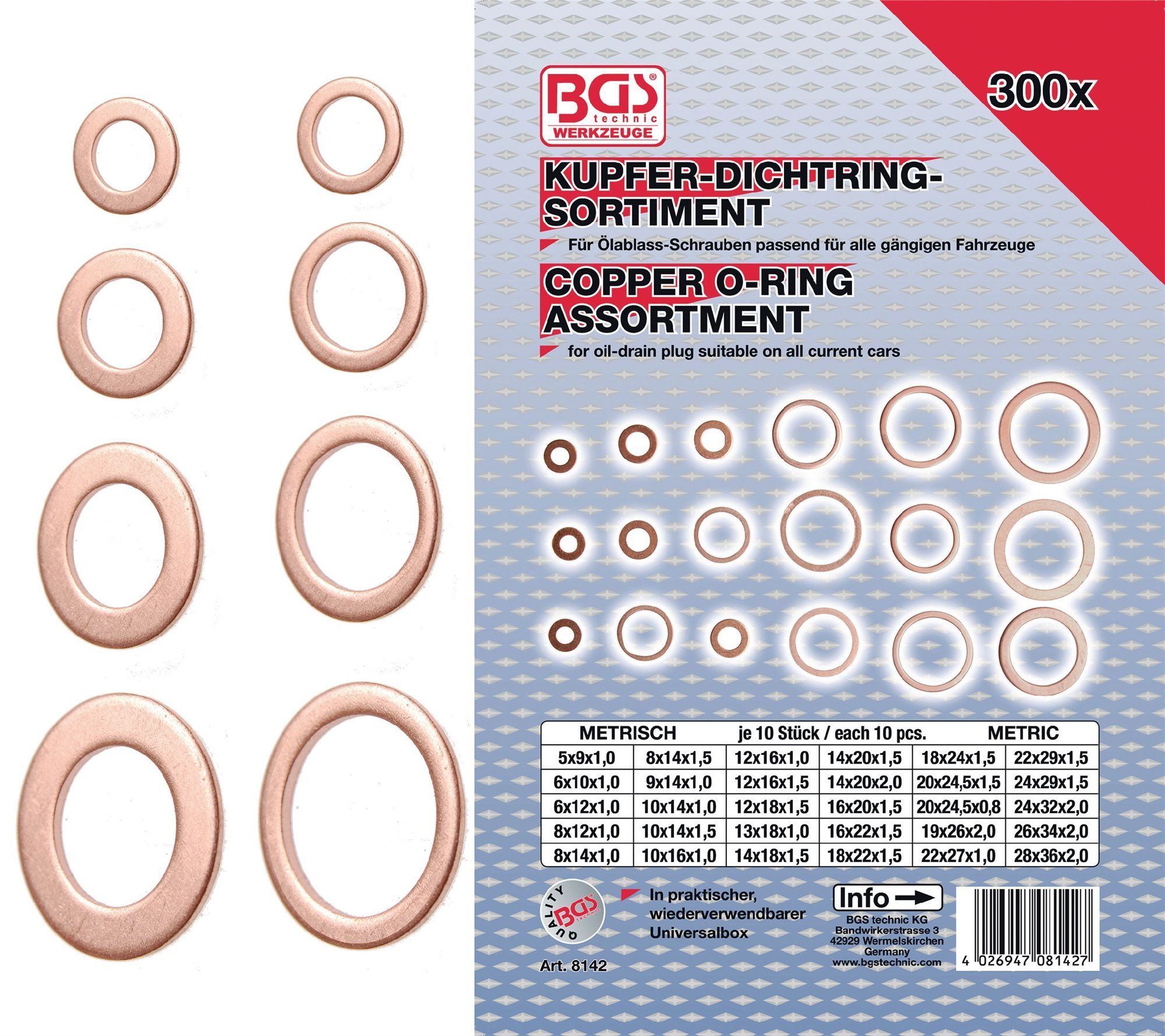 Dichtring-Sortiment | Kupfer | 300-tlg