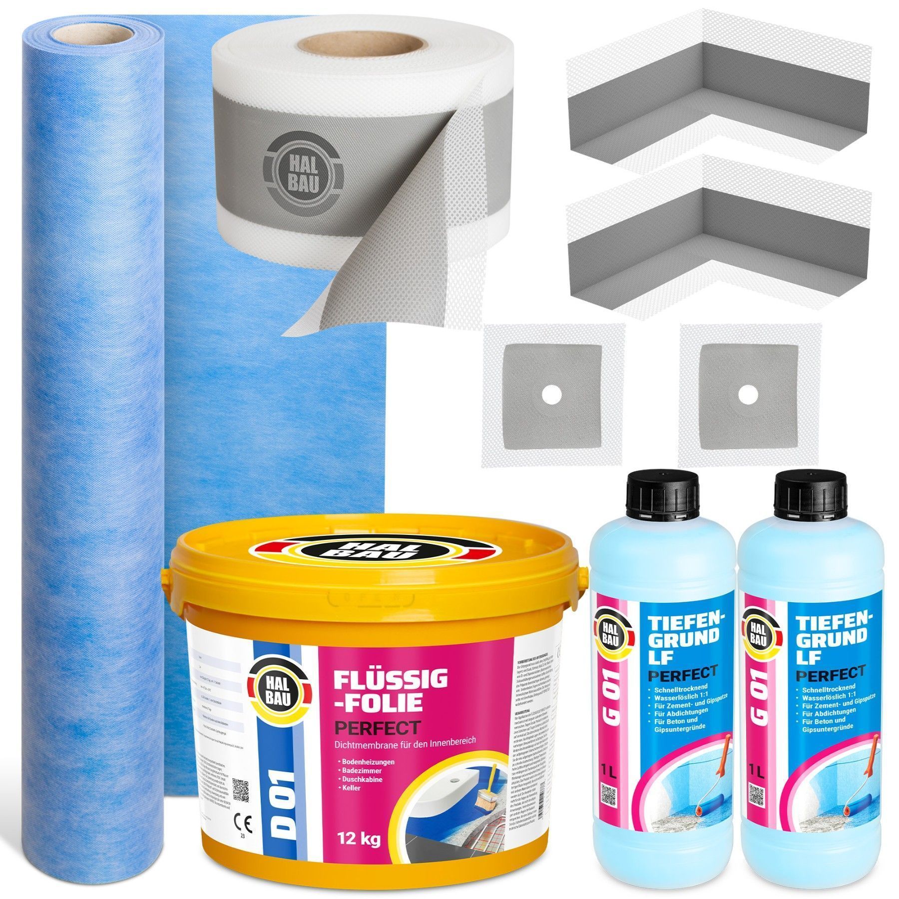 Dichtset Flüssigfolie 12kg Dichtband Ecken Manschetten Dichtbahn Tiefgrund H35